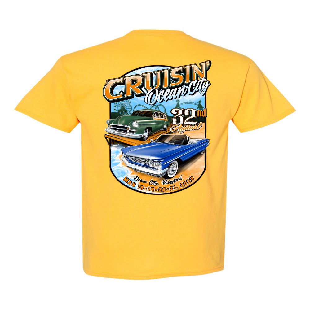 Source : specialeventpro.com2023 Cruisin official classic car show event t shirt yellow Ocean