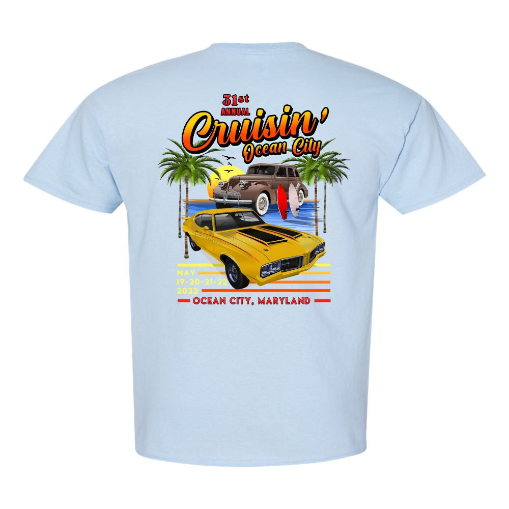 Source : www.ococean.com2022 Cruisin official classic car show event t shirt light blue